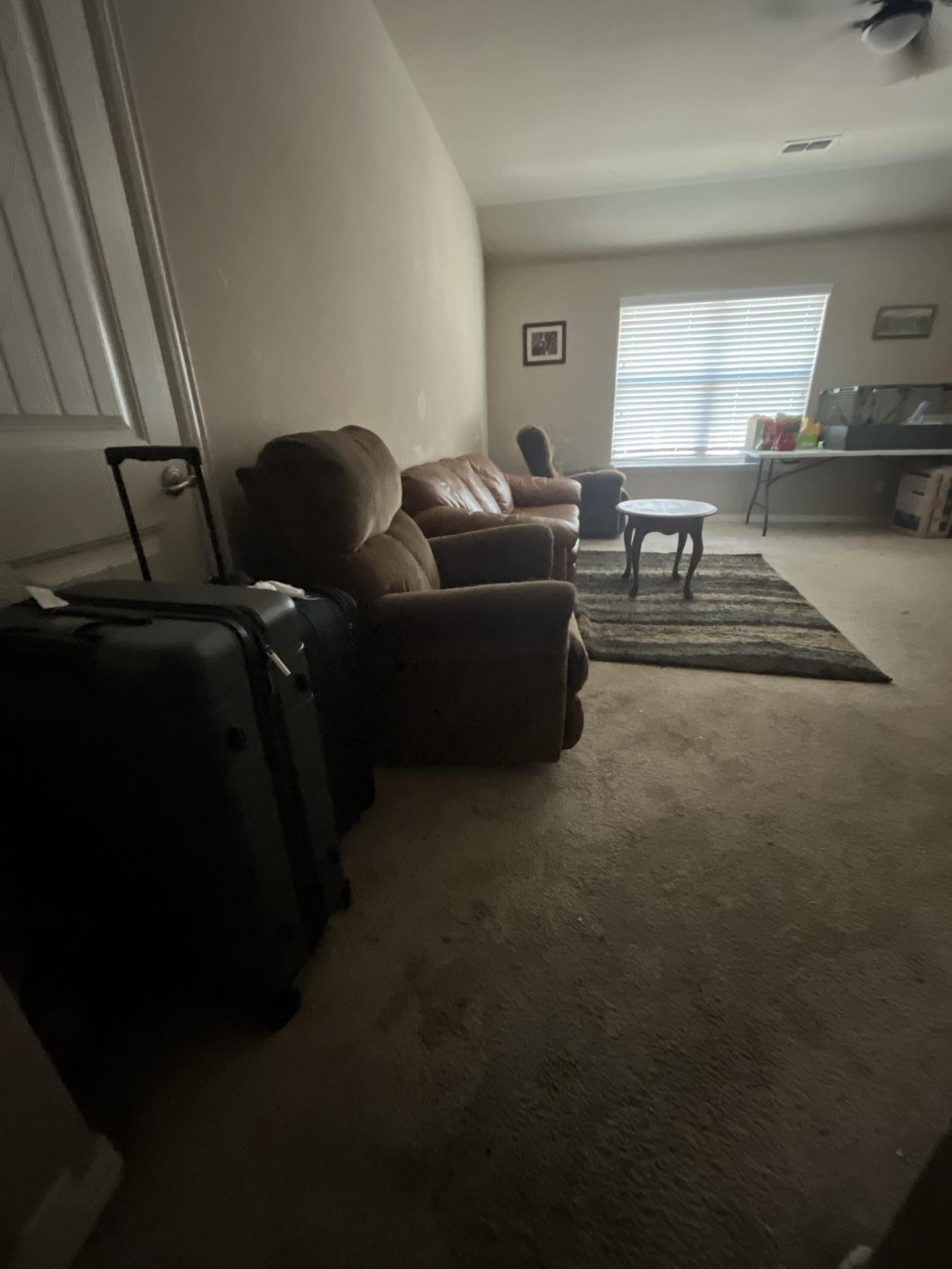 We inspected the affected upstairs areas to assess the extent of the water damage, then performed water extraction, drying, and dehumidification to prevent further structural issues or mold growth. Our team ensured thorough mitigation of all impacted surfaces and materials to restore the living room and bedroom to a safe, dry condition.