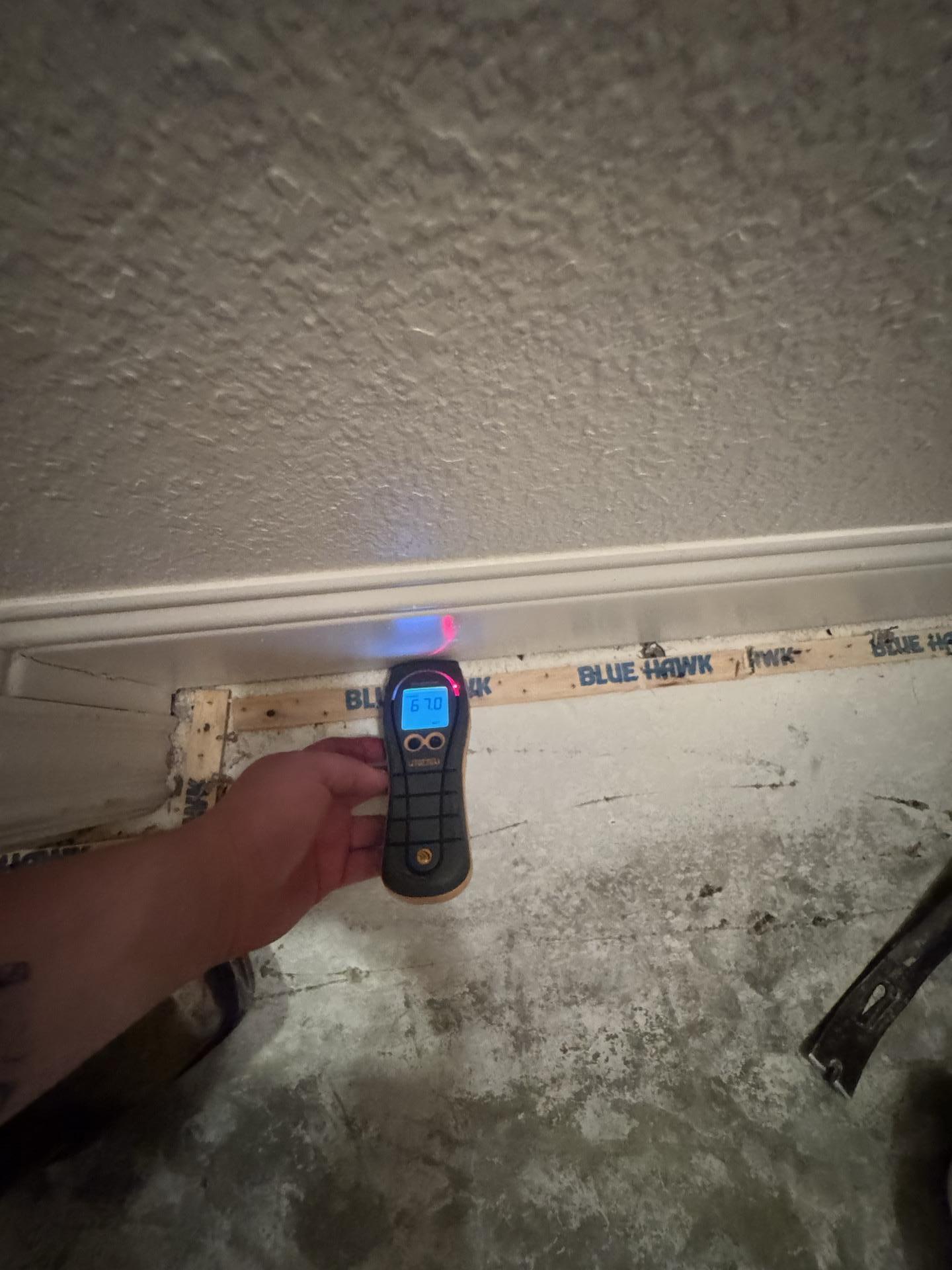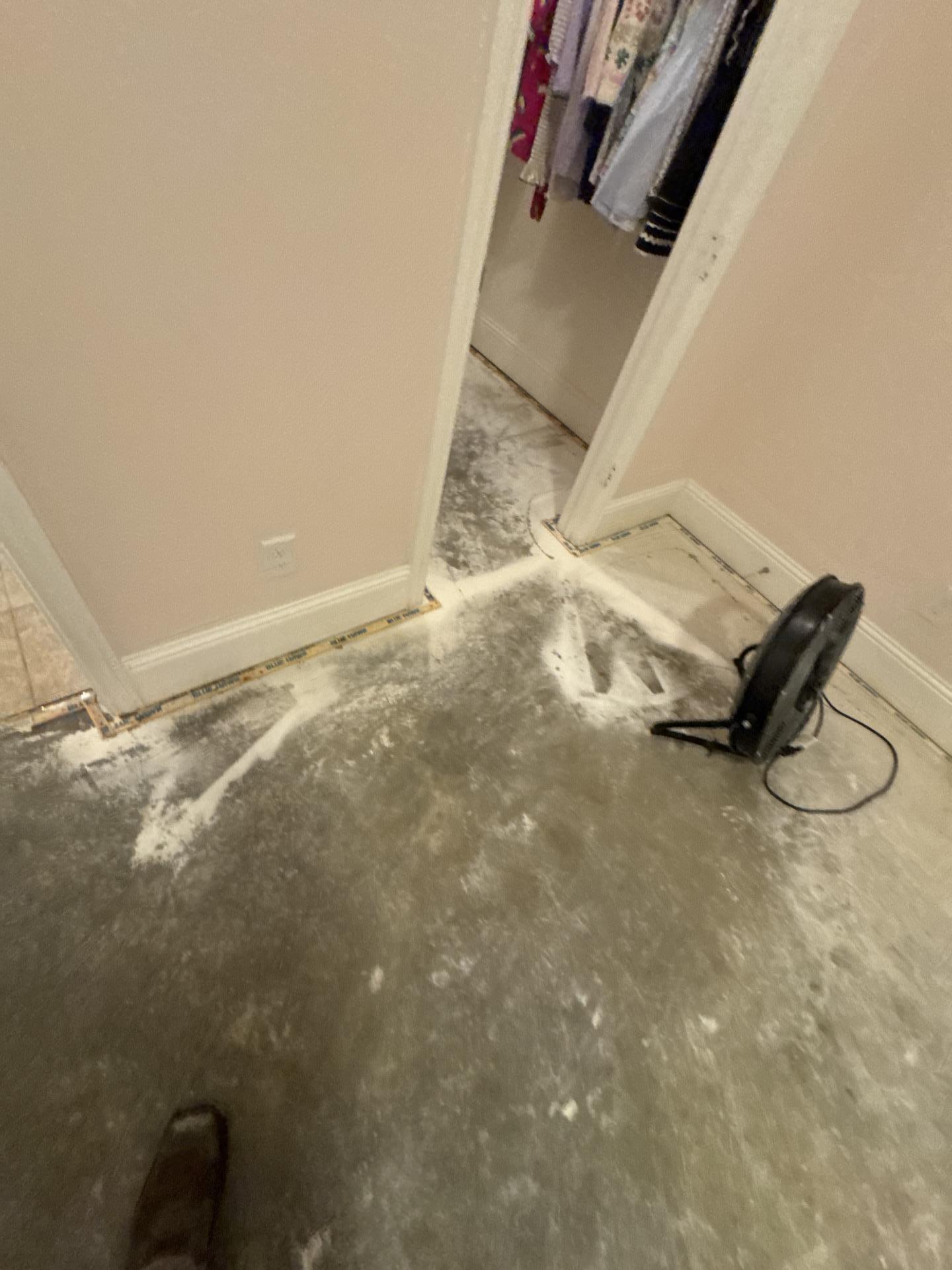 Our team at Dalworth Restoration conducted a thorough water damage inspection, identifying moisture intrusion in the bedroom and closet. We utilized advanced moisture meters to pinpoint affected areas, removed all water-damaged flooring, and implemented professional drying techniques, including the use of industrial fans, to restore the subfloor and structural integrity of the affected spaces.