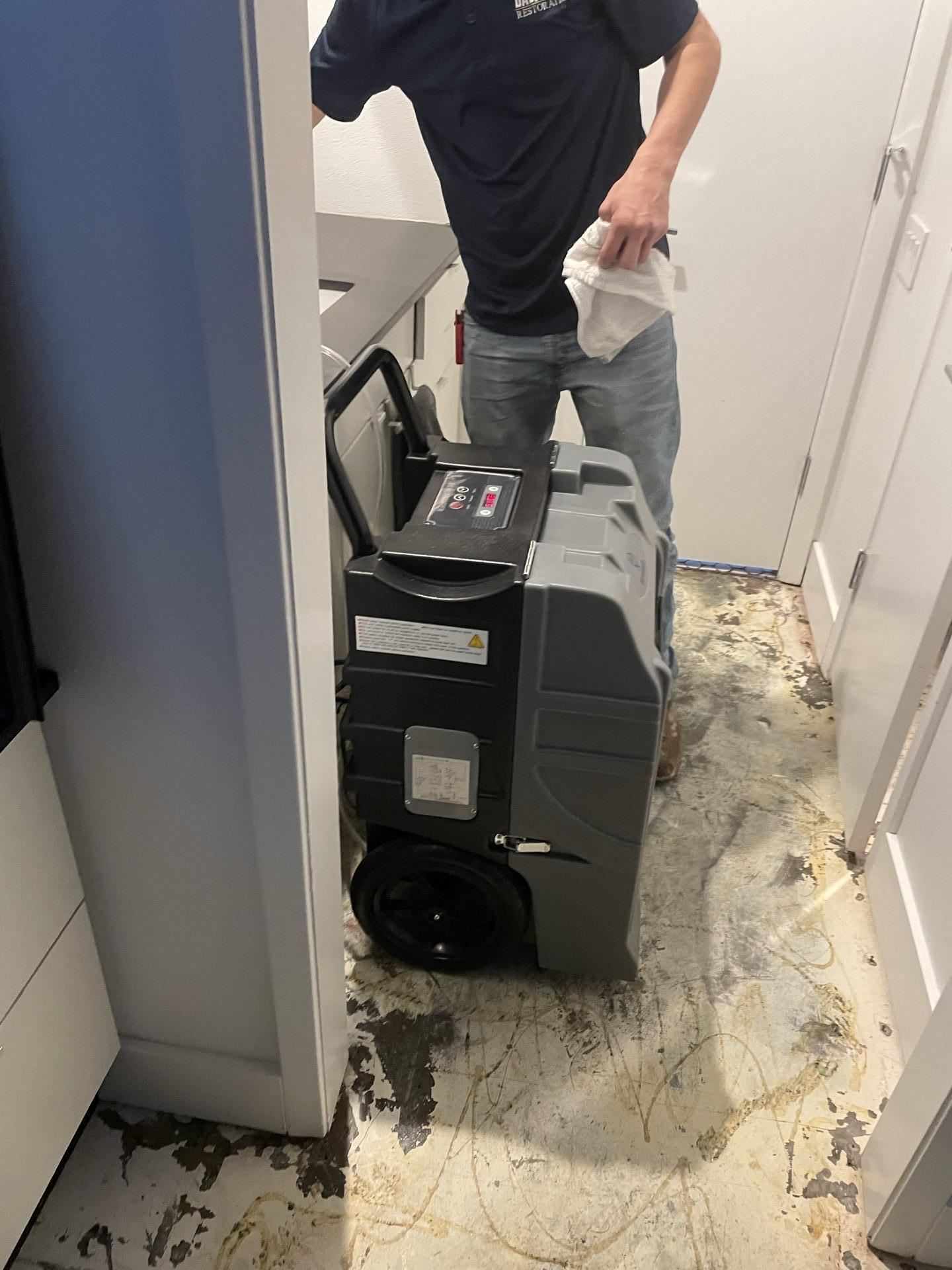 Dalworth Restoration provided comprehensive water damage restoration, including water extraction, removal of affected flooring (such as carpet), drying of the concrete subfloor using specialized equipment, and thorough cleanup to mitigate further damage.