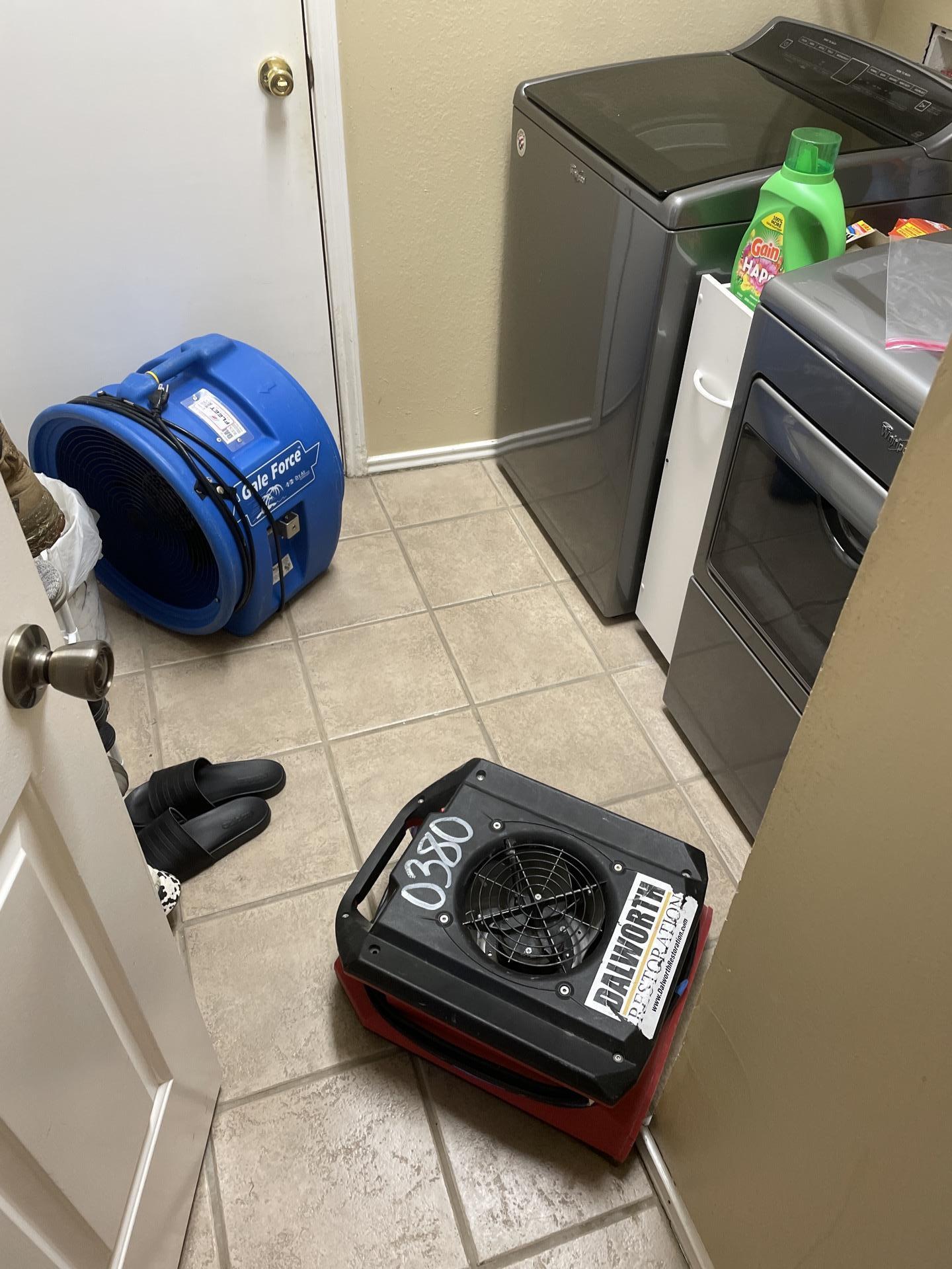 Dalworth Restoration provided comprehensive water damage restoration services, deploying professional-grade air movers and drying equipment in affected areas including the entryway, laundry room, bathroom, and living room to effectively dry out floors and structural components. Our team ensured thorough moisture removal to restore the property to its pre-damage condition.