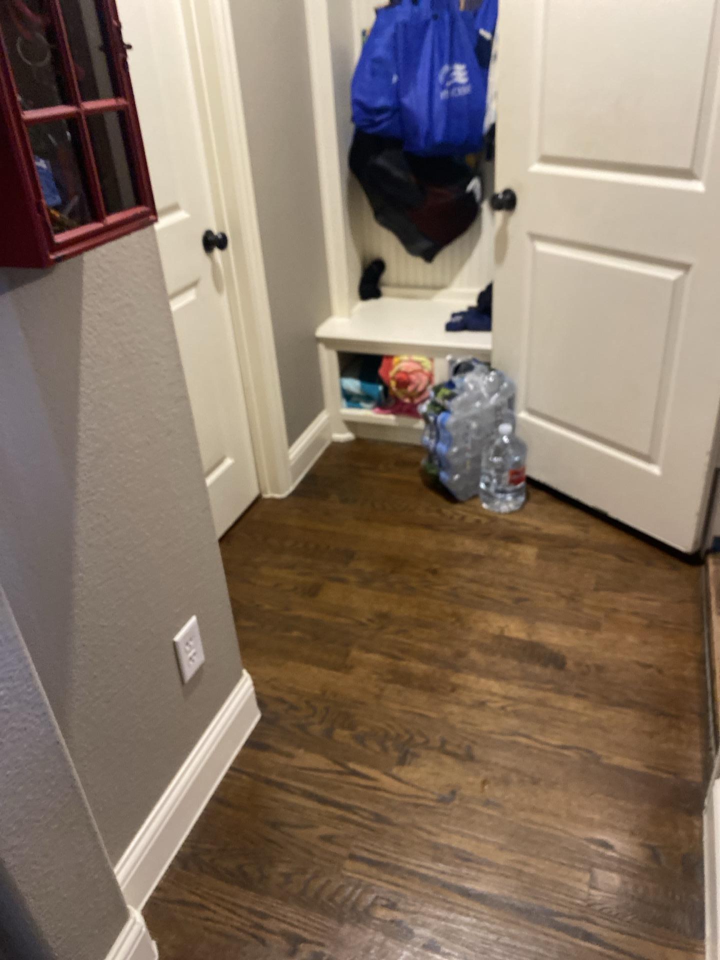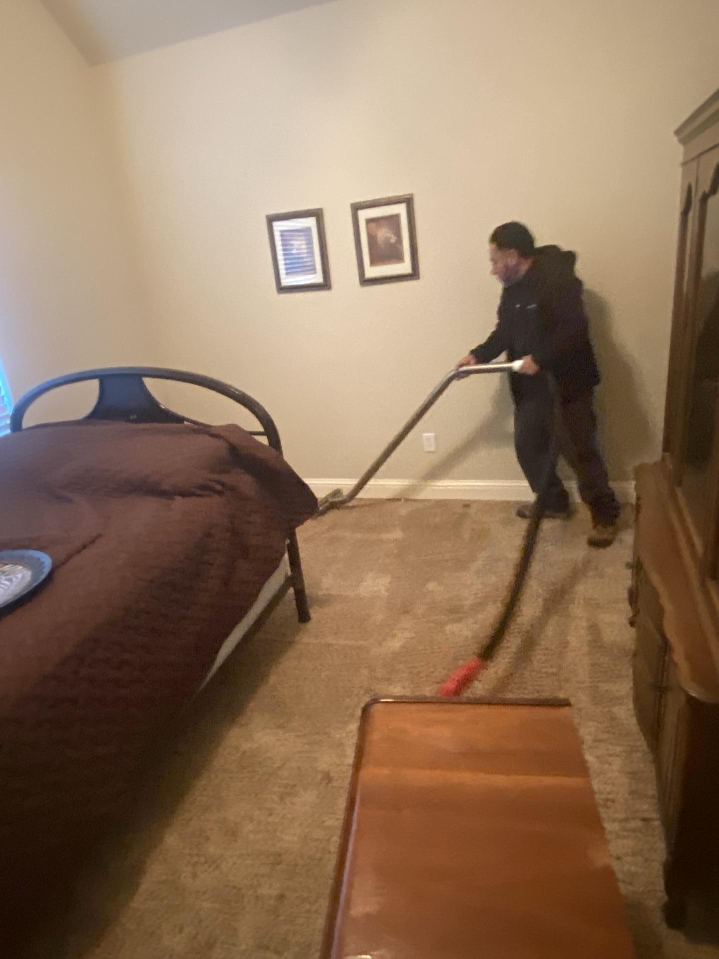 Provided comprehensive water damage restoration services including water extraction, drying of affected hardwood flooring in multiple rooms and hallways, and professional carpet cleaning in a bedroom to restore the property to its pre-damage condition.