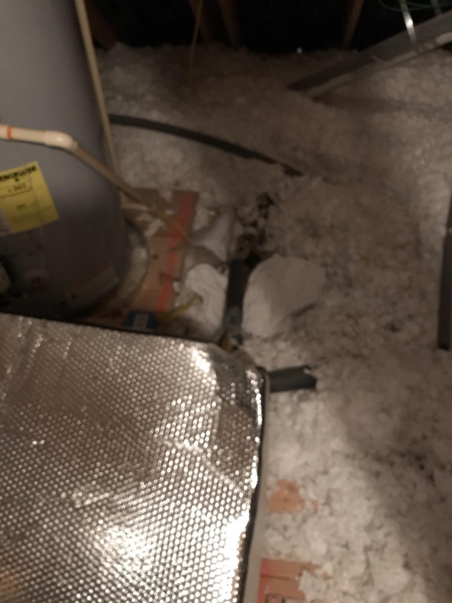 Our team performed a comprehensive water damage assessment, including thermal imaging to identify hidden moisture. We successfully removed all damaged insulation from the attic, particularly around the water heater, and initiated the drying process to prevent mold growth and further structural damage. Cleanup of affected areas and items was also conducted.