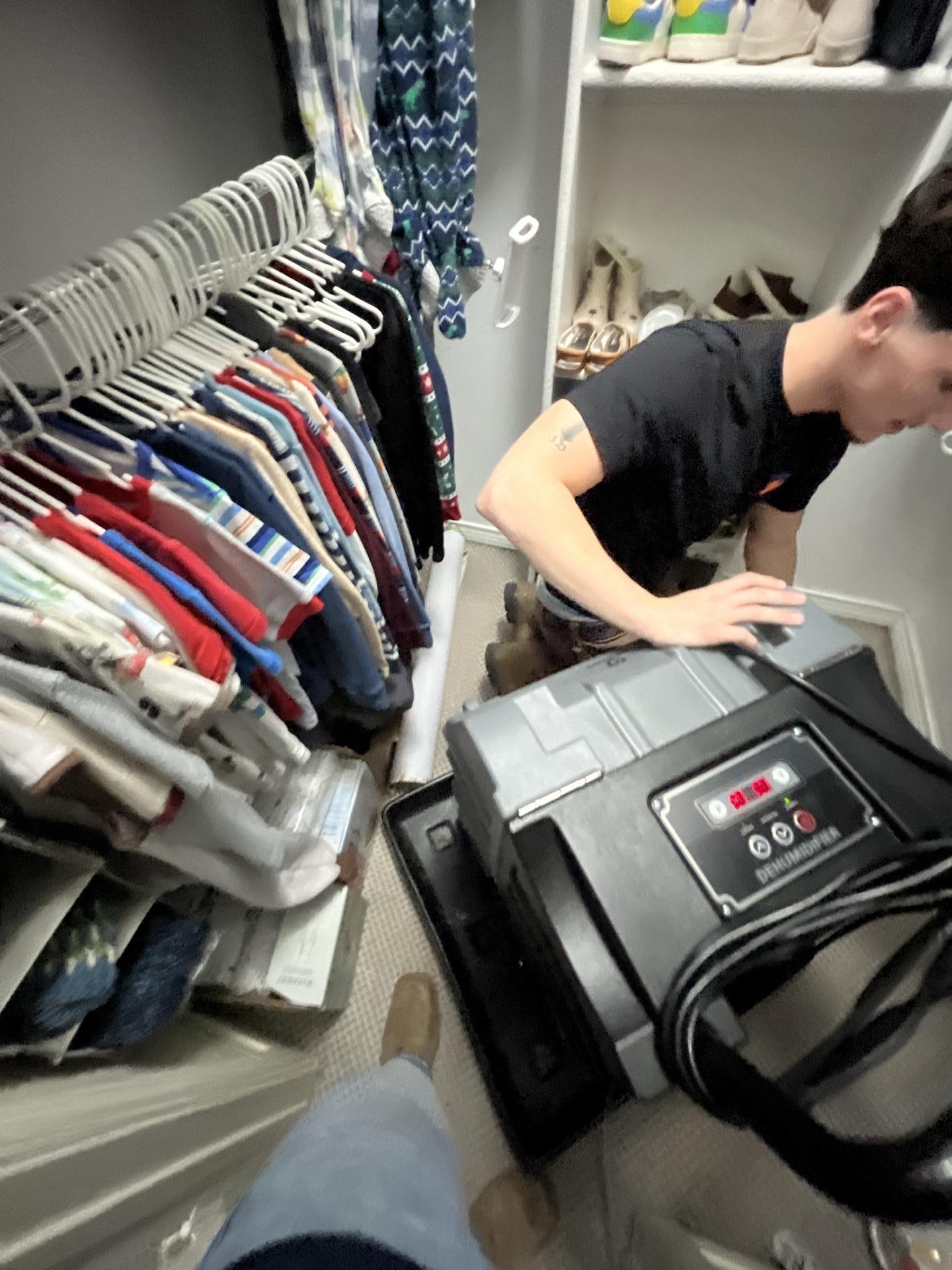 Our team provided comprehensive water damage restoration services, including initial moisture detection and assessment using advanced moisture meters on affected areas like hardwood floors. We contained the damaged areas with plastic sheeting to prevent further spread and ensure effective drying. Specialized drying equipment, such as dehumidifiers, was strategically placed in areas like the closet to mitigate moisture. We addressed visible water stains on ceilings and implemented a full drying protocol to restore the affected kitchen, living room, and closet areas.